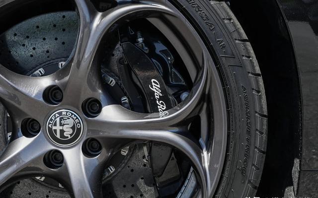 另外,Giulia朱丽叶四叶草Super Sport黑标限量版跟标准版四叶草车型比起来做了更多轻量化处理,车顶、外后视镜壳、侧裙和尾部扰流板等都换成碳纤维打造的了。它还标配经过抛光处理的19英寸运动型轮辋和GTA运动型黑色制动卡钳(标准版是红色卡钳),配的是倍耐力P ZERO轮胎,规格为245/35 ZR19,这和标准版四叶草车型一样。