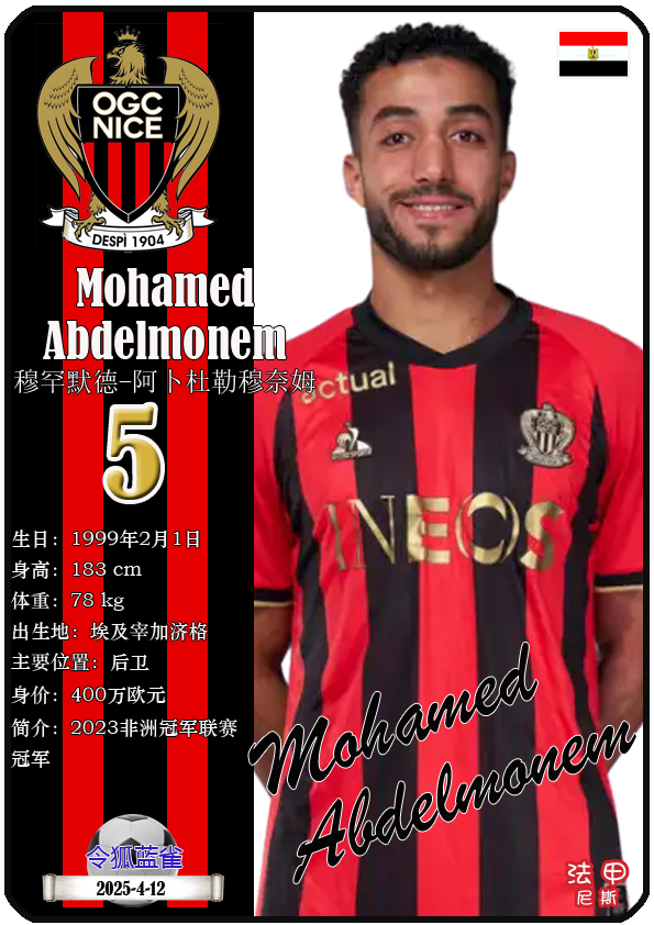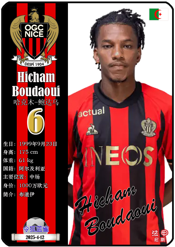 法甲尼斯足球俱乐部主场是杜雷尔球场,2024/25赛季主教练是弗朗基-海斯,本赛季拥有球员埃文恩-古埃桑、马尔钦-布尔卡、默哈梅德-阿里乔等。本期以球星卡的形式展示截至2025年4月15日尼斯足球俱乐部的27名球员(按球衣号码排序):