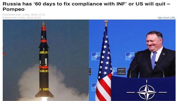 近日,美国国务卿卿蓬佩奥向媒体公开表示,美国将会给俄罗斯最后60天的期限来遵守《中导条约》,销毁其部署的违规导弹,否则美国将正式启动退出该条约的程序。一切后果都应由俄罗斯负责。