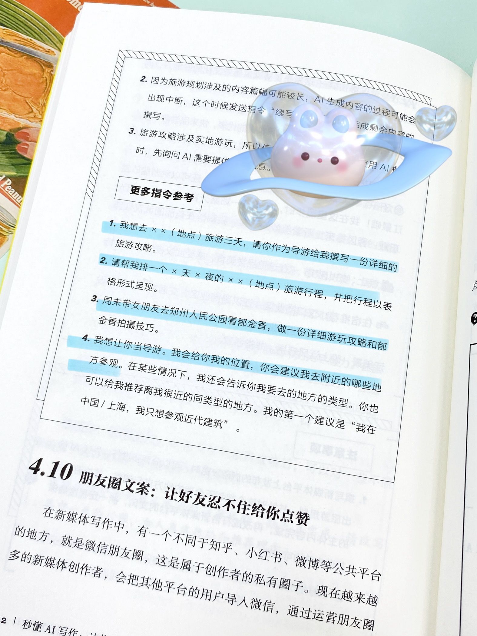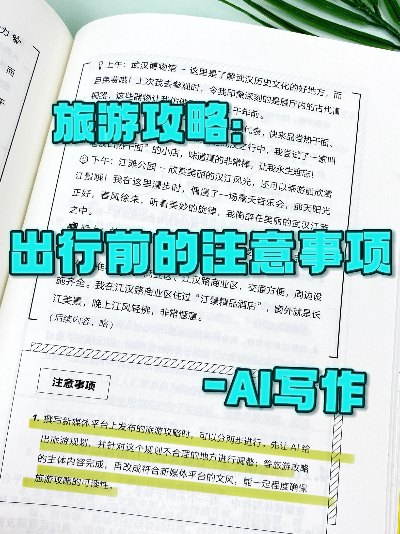 1.撰写新媒体平台上发布的旅游攻略时,可以分两步进行。先让 AI给出旅游规划,并针对这个规划不合理的地方进行调整;等旅游攻略的主体内容完成,再改成符合新媒体平台的文风,能一定程度确保旅游攻略的可读性。