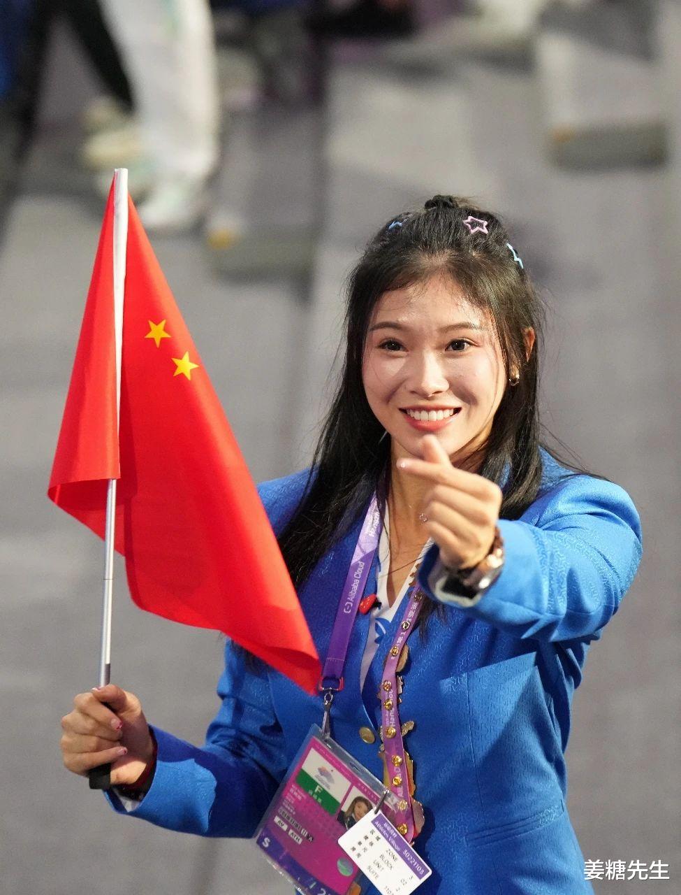 在全运会开幕式上,镜头给到了吴艳妮,她粲然一笑。