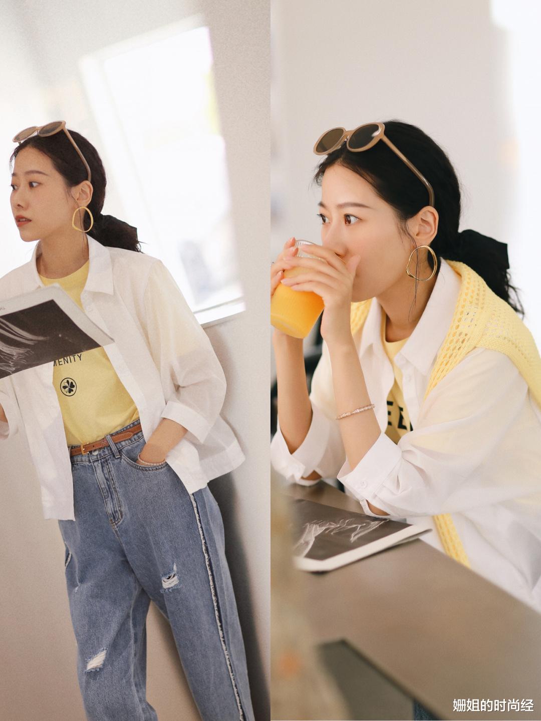 白衬衫的穿搭方式可以多元化,不要仅局限于当内搭。最近很流行的一种穿法就是在白衬衫里面搭打底衫,索性是把它当做外套来穿了,特别是在夏天,当做防晒衣又美又好看。