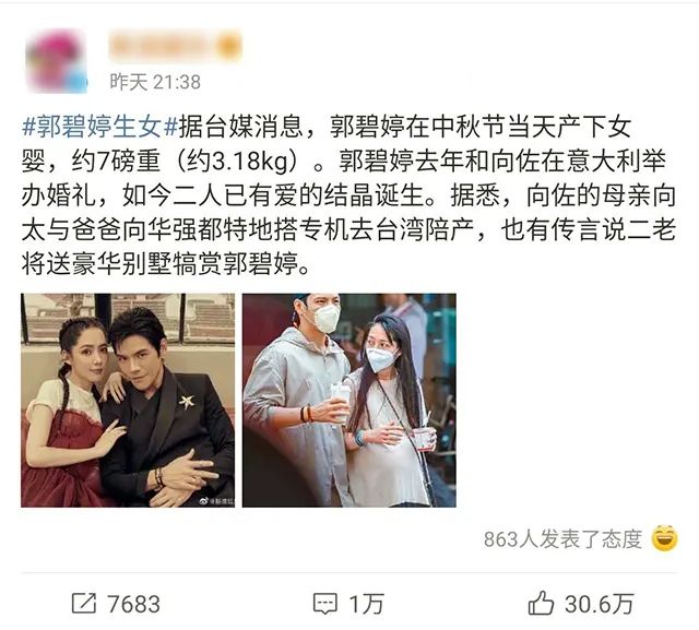 结婚之后的郭碧婷很快就有了身孕,在怀孕期间,郭碧婷曾在个人社交平台上发表过几次言论,每次都引起了网友的热议。