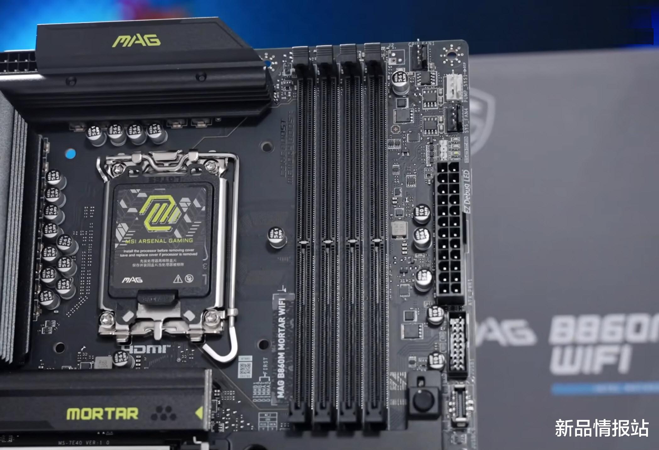 与Intel Ultra5 230F处理器完美搭配的,当属微星MAG B860M MORTAR WIFI迫击炮主板。这款主板从外观上就给人一种沉稳大气的感觉,全黑的PCB板搭配超大的散热片,宛如一件精美的艺术品。哑光质感的PCB板,触手冰凉顺滑,每一个细微之处都经过了精细打磨,毫无瑕疵。而大面积的金属散热片不仅散热效果显著,更能为关键元器件提供坚实的防护,让你的主板在长时间高负载运行下也能保持稳定。
