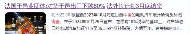 观察者网:法国干邑业团体:对华干邑出口下跌60%,法外长计划3月底访华