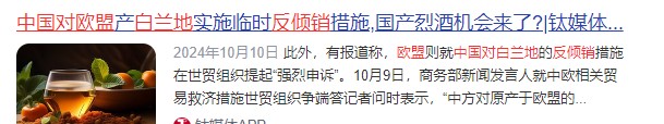 钛媒体APP:中国对欧盟产白兰地实施临时反倾销措施,国产烈酒机会来了?|钛媒体焦点