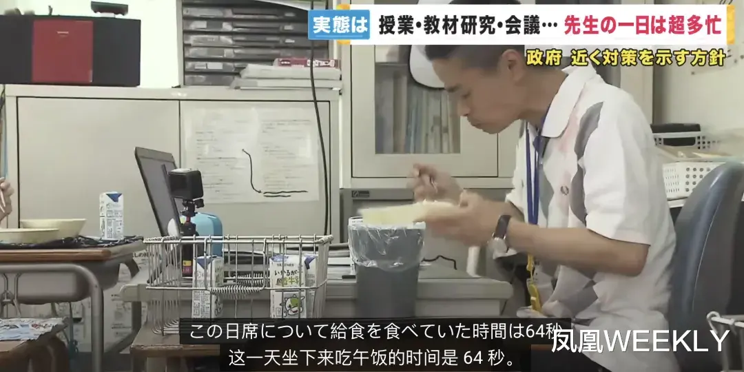 有老师在受访时说他每天吃午饭的时间只有64秒,也有老师在连续上了53天课后直接撒手人寰,更多的则是在无休止的加班中加出了严重抑郁——文部科学省在2021年称,当年共有10944名教师因严重的精神问题而请假休养。