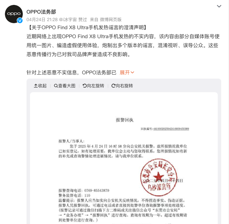 造谣Find X8 Ultra手机发热?小黑子注意点吧,OPPO法务已经报警了!