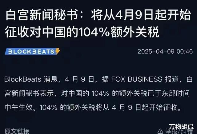 104%的关税,中国这边肯定是没法答应的,美国那边也一样,根本接受不了。这样一来,美股肯定又得跌,投资者们得吓得不轻,亏的钱会更多,说不定连本都搭进去了。
