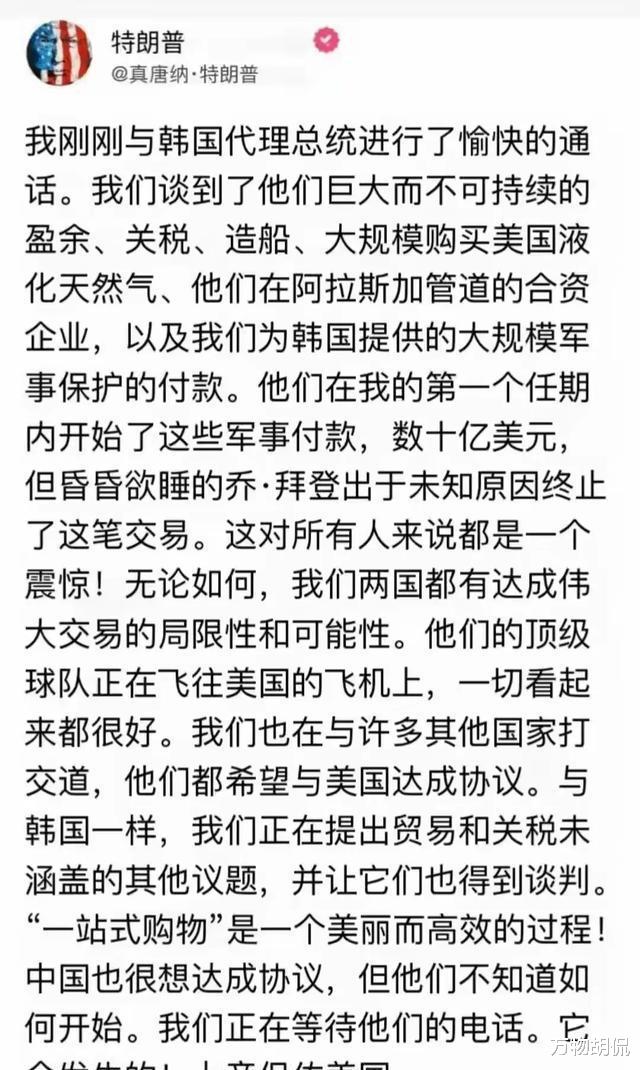 另外,特朗普在社交媒体上得意洋洋地说,韩国临时总统给他打了电话,两人谈妥了一笔大额能源购买交易。他还提到,自己当总统以来,韩国已经支付了好几十亿美元的军事保护费用给他。