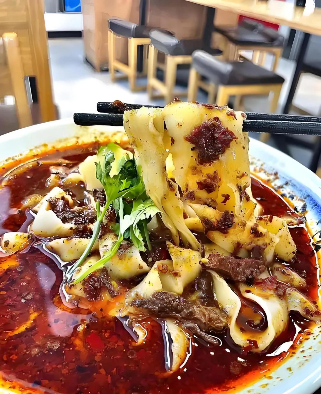 鸡西刀削面,一口下去辣得直冒汗,可就是停不下来,越吃越上瘾,那滋味真是绝了。面条劲道,汤头够味,配菜丰富,简直就是一碗美味的小宇宙啊。