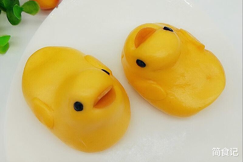 鸭屁股粘粒红豆,寓意“鸿运当头”。