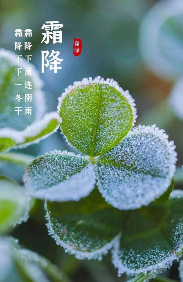 霜降:天气渐冷,初霜出现,植物开始枯黄。