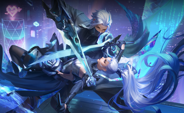 这一对情侣CP的皮肤上线于2021年的2月14日,也就是情人节当天上线的,在设定上这俩位都市特工是有着时远时近的距离,有一种相爱又相杀的关系。