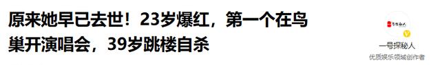 信源:《原来她早已去世!23岁爆红,第一个在鸟巢开演唱会,39岁跳楼自杀》2024-06-15 16:11·一号探秘人
