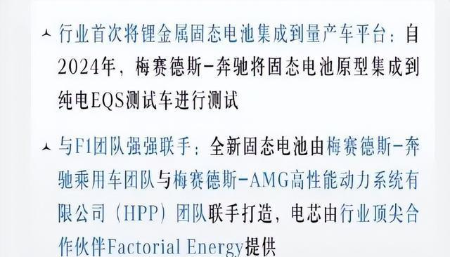 奔驰公司透露,他们首次在业内把锂金属固态电池用在了大批量生产的汽车平台上,从2024年起,就在EQS车型上进行了测试。这么一看,奔驰在固态电池车的测试和批量生产上,已经先行一步,占据了优势。