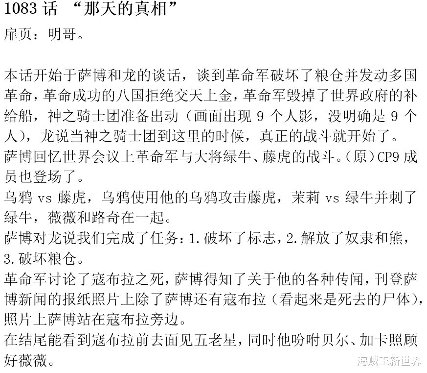 不知道神之骑士团有具体什么职能感觉比CP0更突出于执行战斗任务CP0的处境更模糊,路奇前景堪忧路飞他们依旧下线,没有蛋头岛信息