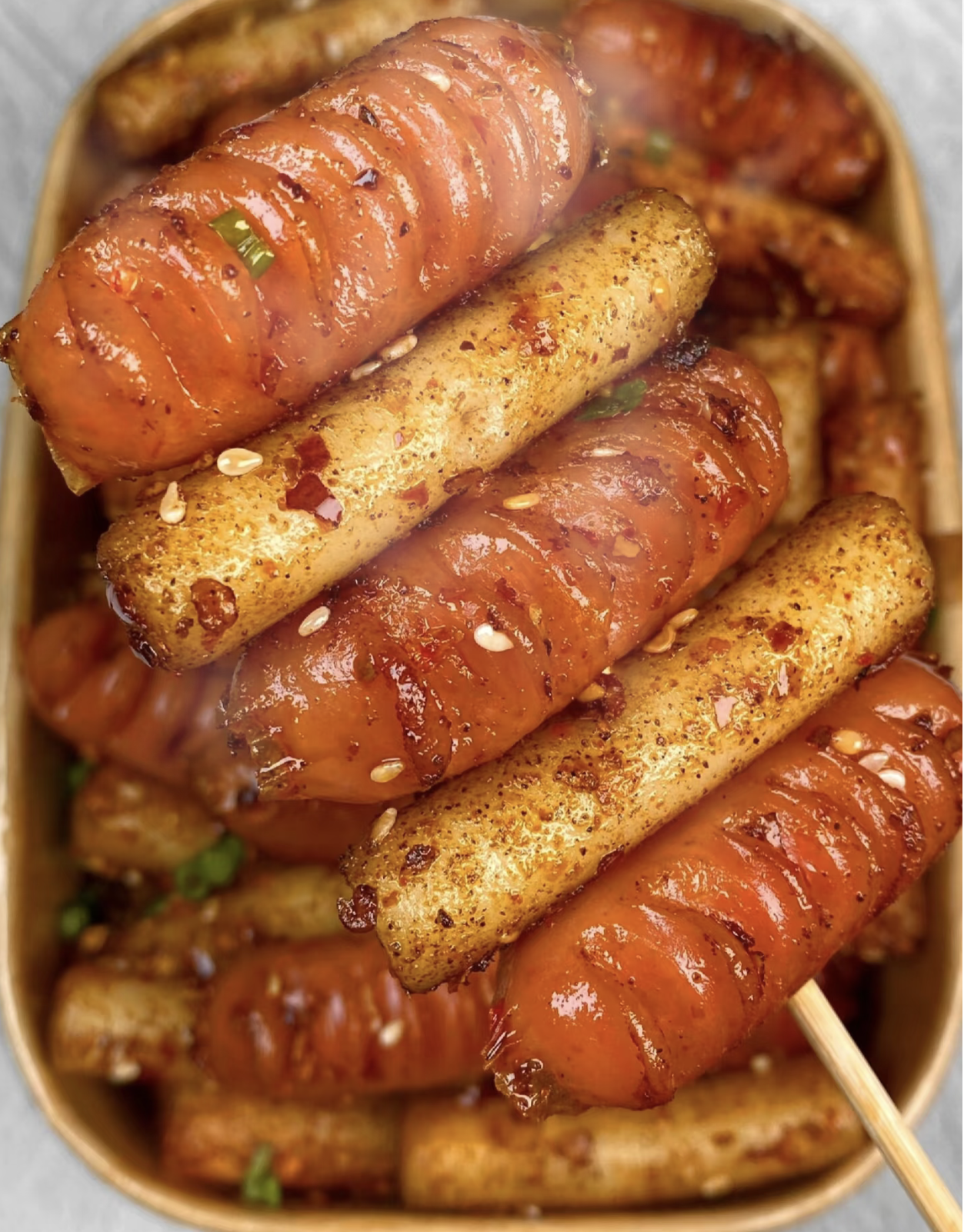 首先,我们需要准备一些基本的食材。香肠是这道菜的主角,我们可以选择自己喜欢的口味,比如辣味或者原味。年糕则是这道菜的另一个重要组成部分,它的口感软糯,与香肠的香脆形成了完美的搭配。此外,我们还需要一些调料来提升这道菜的风味,比如生抽、辣椒面、孜然粉和白芝麻。