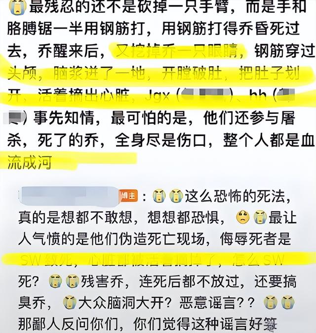 还有人将其死亡与某些公众人物联系在一起,试图制造轰动效应,更有甚者,一些网友开始编造乔任梁死亡时的具体细节,描述极其血腥和残忍。