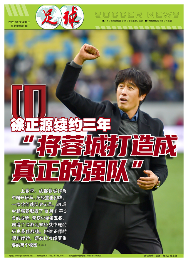 上赛季,成都蓉城作为中超升班马,历经重重困难,一次次创造队史记录。34场中超联赛取得了18胜11平5负的成绩,荣获中超第五名,创造了成都足球征战中超的历史最佳战绩。成绩上的客观因素,是成都俱乐部选择续约徐正源的重要原因。