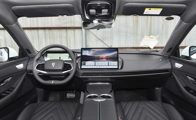 打开车门,深蓝 L07 的内饰如同一个豪华的科技座舱,瞬间让人沉浸其中。车内配备的 55 英寸 AR - HUD 以及 15.6 英寸的中控多媒体触控屏,犹如两个巨大的智能窗口,为驾驶者提供了丰富的信息和便捷的操作。内置的高通骁龙 8155 芯片,确保了系统的流畅运行,无论是导航、娱乐还是车辆设置,都能轻松应对。