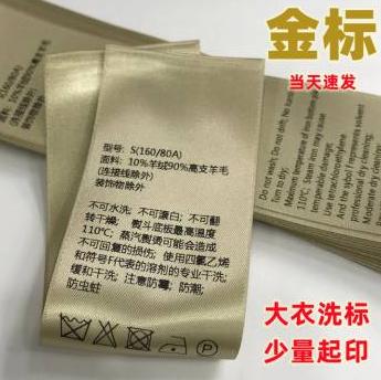 但这个所谓的“金标”很可能只是个普通的彩色水洗标,成本不过几分钱,随便一个小作坊就能印制,上面的含量写多少都行,100%也是一样。