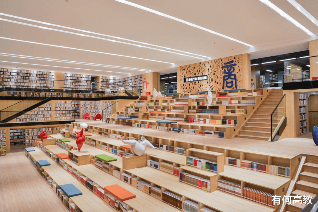 不仅如此,其营造的氛围也是非常多元,有阳光满布,郁郁葱葱的净白色桌椅,有色彩缤纷、充满童趣的“多巴胺书架”,也有图书丛立、古朴雅致的研讨会议区,以及个性十足、五光十色的动漫科技园,更有秋千轻摇、视野开阔的天台休憩处......无论学生需要怎样的心灵与精神放松,都能在广商得到满足,图书馆也成为了该校学生最为满意、喜爱的学习休闲场所。