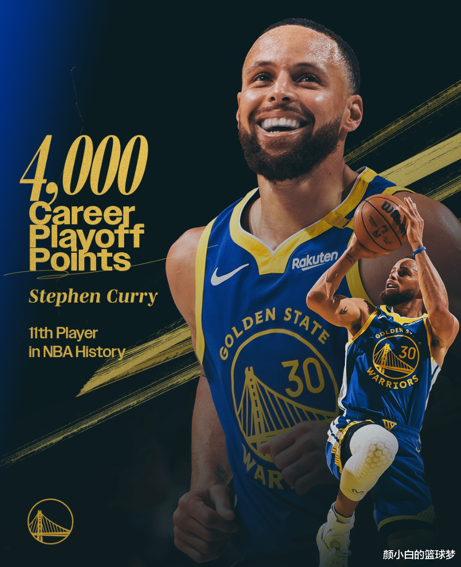 首节库里10分钟里4中2+三分3中1,拿到5分1篮板1助攻,凭借这5分他已经完成了季后赛4000分里程碑,在他之前的托尼帕克是4045分,今年季后赛就能超越,但第九的杰里-韦斯特有4457分超越有些困难。