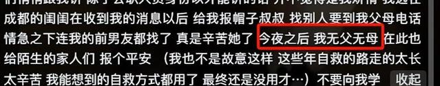 可自身的“求生欲”却达到了巅峰,“甘心就这样死了吗?”,她拿起手机录下了一段对父母预告自杀的视频。
