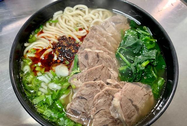 特色:华北名汤,汤底加入花椒、大料等香料,配以本地薄切牛肉,口味偏咸鲜。