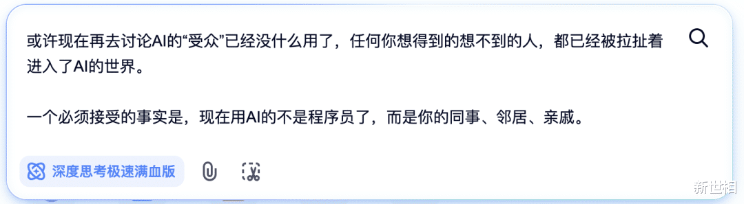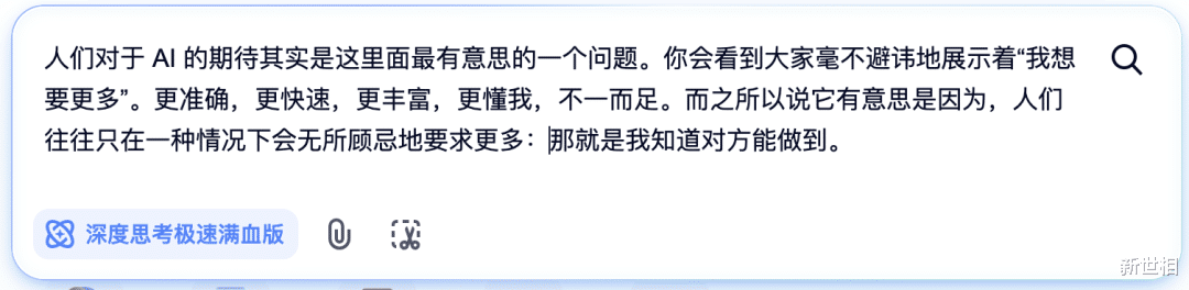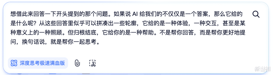 这个回答在无形中完成了一次人类与 AI 的闭环,在我们还试图用复杂的问题探索 AI 的边界时,AI 的回应却是和我们一起思考,来得到一些需要刹车的警惕。