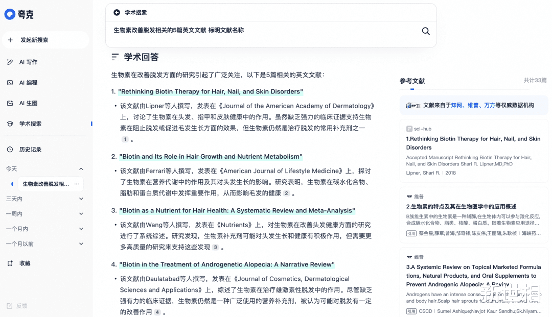 但是现在的话,比如说我想要维生素 D 和肠道相关健康方面的文相关研究,夸克能够帮我进行一个筛选和范围的缩小,我可以直接进行第二步的工作。