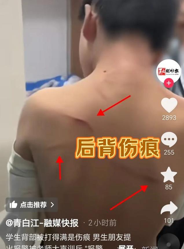 1、视频中明显的看到了被打的男生后背确实是伤痕累累,肉眼可见,这是不容质疑的事实。