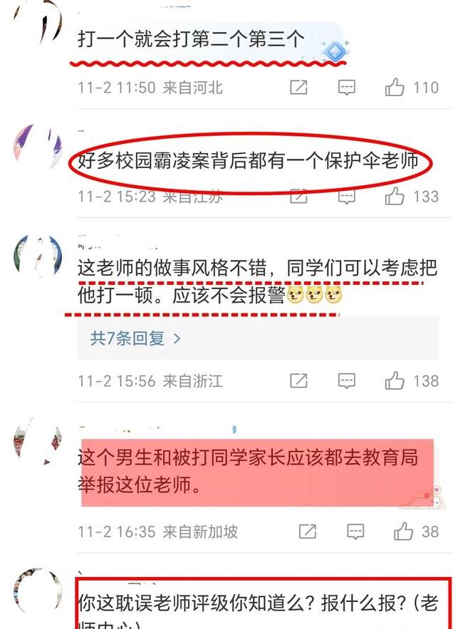 有网友评论说:“好多校园霸凌案背后都有一个充当“保护伞”的老师。”