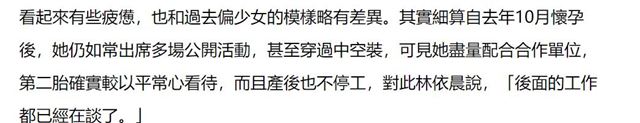 如今,林依晨的二胎即将到来,我们也期待着她能够顺利生产,迎接这个新的生命。