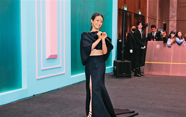 当时她穿着一件娃娃装式的礼服,巧妙地遮住了微微隆起的孕肚,完全看不出她已经怀孕五个月了。