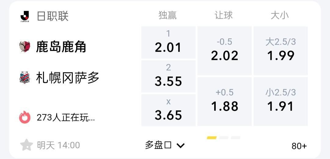 至于本场比赛机构给出鹿岛鹿角让半球起步,根据近况与对战的分析下,我们依然看好鹿岛鹿角能够拿下三分。