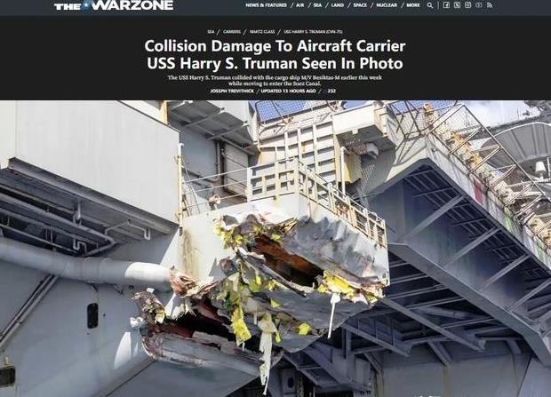 据美国“战区”网站15日报道,照片显示,“杜鲁门”号船尾右舷靠近飞机升降机的浮筒有多处大裂口,船体其他部位是否受损尚不清楚。但凡贝希克塔斯-M号撞的角度再歪一点,杜鲁门号恐怕就得回船坞躺两三年了。美军杜鲁门航母的钢材也太差了吧,一艘航母都被商船撞成这样,这样的航母还能横行霸道。