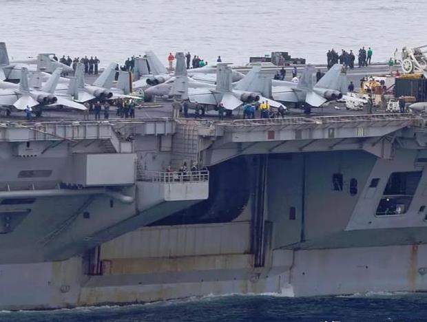美军终于是捂不住了,美航母被撞伤后照片首度曝光,受损严重,被撞出了大洞。美军核动力航母号称世界最厉害的海上武器装备,武装的到牙齿的10万吨级的超级航母,想不到被一个5万余吨的商船撞上了,还被撞上一个大洞。