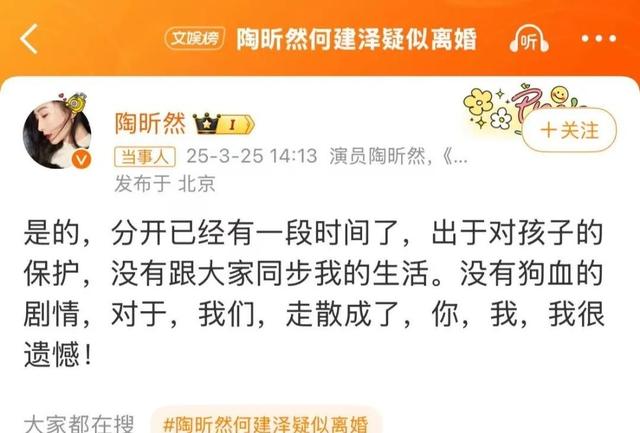 十二年前,《甄嬛传》里那个低头绞着帕子说“原是我不配”的安陵容,让全网记住了陶昕然的名字。十二年后,当#甄嬛传开播12周年#的热搜词条挂上榜单时,人们发现戏外的“安陵容”竟也困在了相似的命运里——3月25日,陶昕然用一句“走散成了,你,我”给16年的感情画上句点,评论区瞬间涌入3.2万条带着《甄嬛传》台词的留言。有网友翻出她2015年的婚礼现场视频,红毯上那句“已得一心人,白首不相离”的誓言,在春日阳光下泛着刺眼的光。