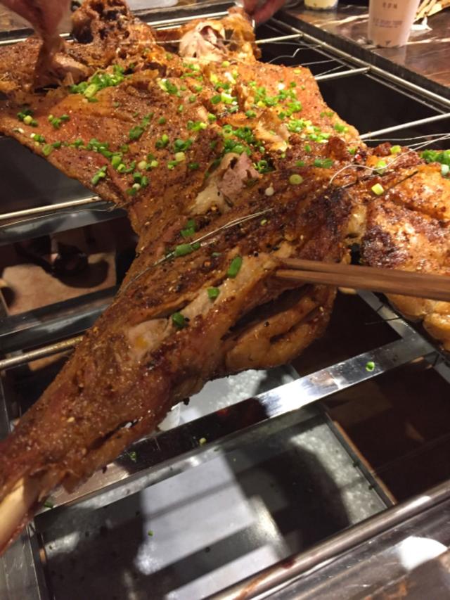 同学聚会10个人,决定吃烤全羊,选了大雁塔这家。 这家烤羊庄选的是两个月左右,大约 7-8公斤的小羊羔,用草原上的古法烤制。