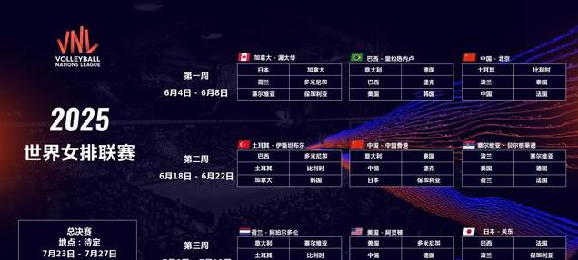 分站赛将于2025年6月4日至7月13日举行,分三周三站比赛,第一周6月4日到8日进行,分别是在加拿大的渥太华、巴西的里约热内卢、中国的北京举办。