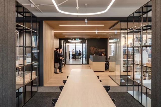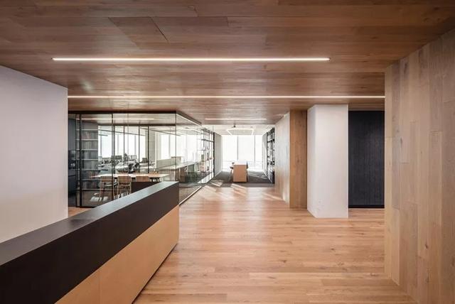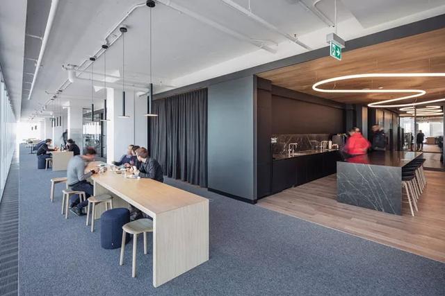 “加拿大KPMB Architects建筑师事务所专注于建筑与设计的综合形式表达。其位于多伦多环球邮报中心大楼的全新办公室展现了前沿的办公环境设计理念与非凡的实力。温暖木色与深灰色的巧妙碰撞,以极简哲学演绎优雅时尚态度。