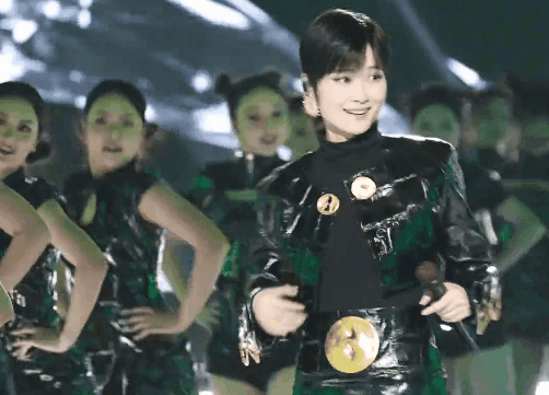 星光大赏的舞台上,李宇春身穿黑色高领针织衫搭配皮衣、皮裙唱跳,挑眉、坏笑,一举一动都充满了别样的魅力。