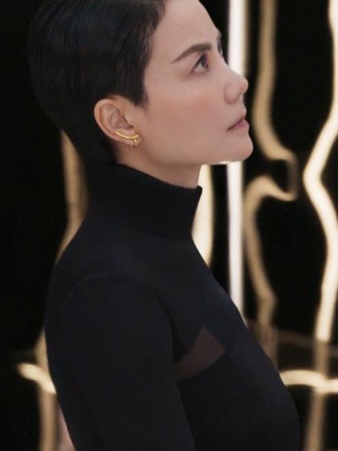 长发掖在耳后,将轮廓分明的脸蛋露了出来,五官精致立体,34岁的她脸上没有半点瑕疵。