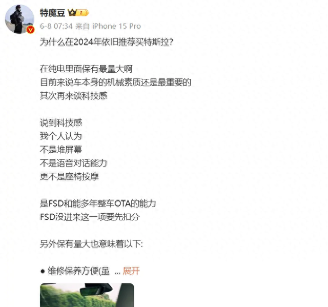 博主@特魔豆 在深度解析特斯拉热销十几年的秘诀时,分析道:首先,特斯拉在纯电动车市场中的保有量领先;其次,车辆自身的机械品质至关重要,而特斯拉在产品可靠性方面经历了长年累月的真实车主验证;最后,科技感也是不可或缺的一环。