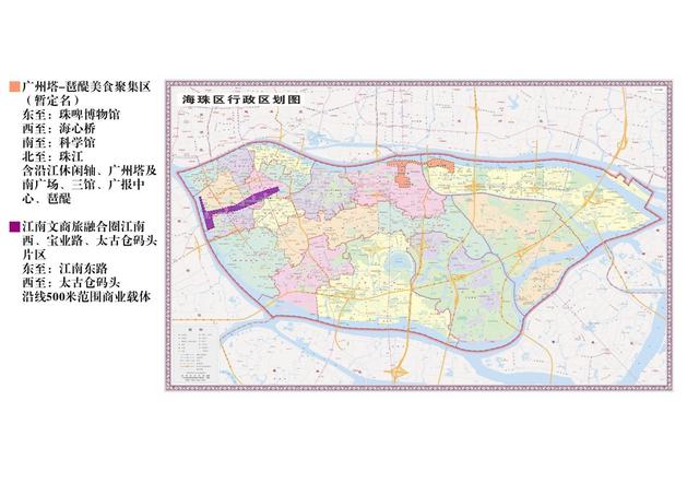 海珠区:广州塔-琶醍美食聚集区、江南文商旅融合圈