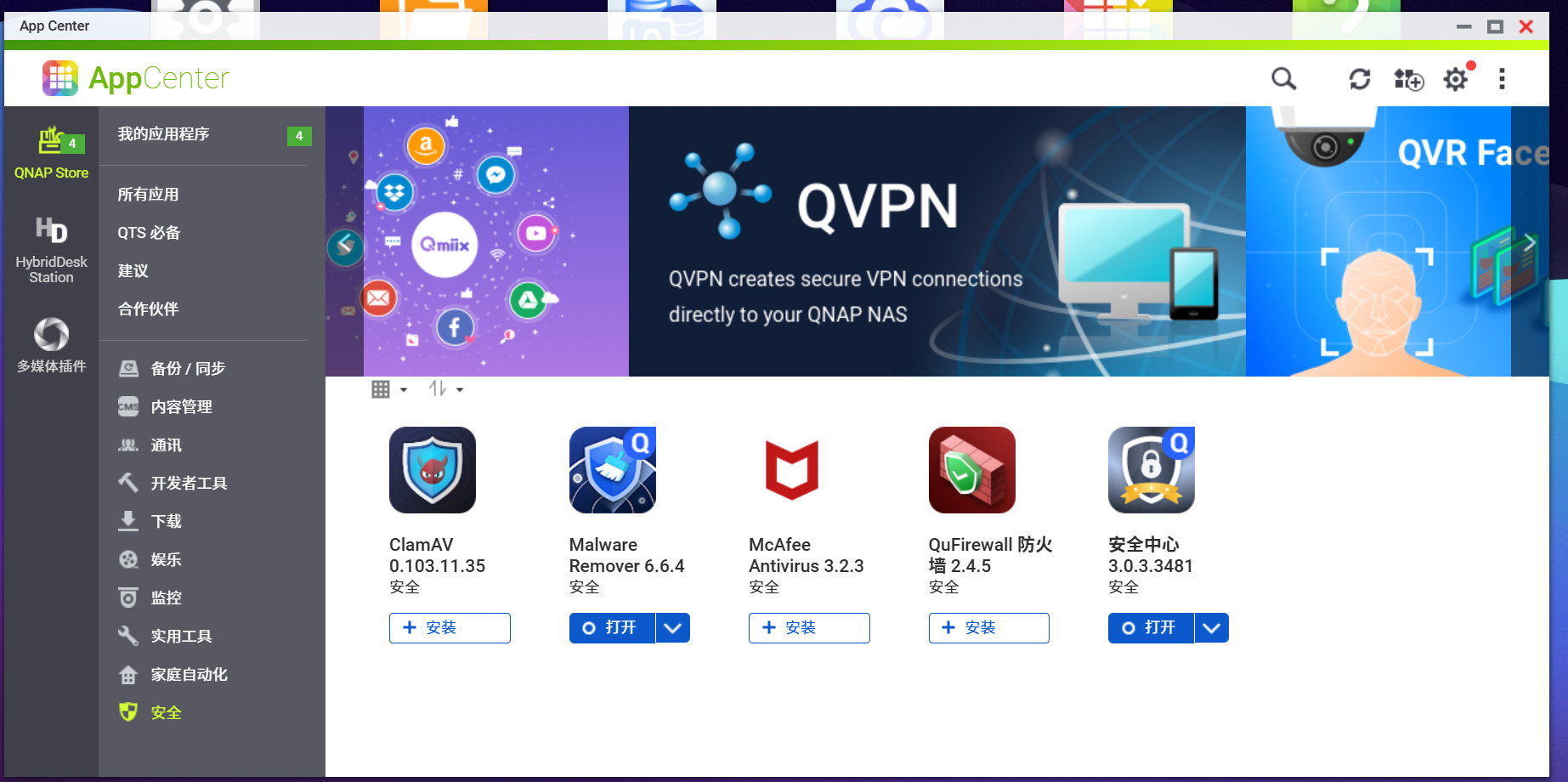 除此之外,还有众多第三方安防软件可供我们选择使用,无论是我们耳熟能详的McAfee,还是小众的QuFirewall,都能有效的守护我们的NAS。