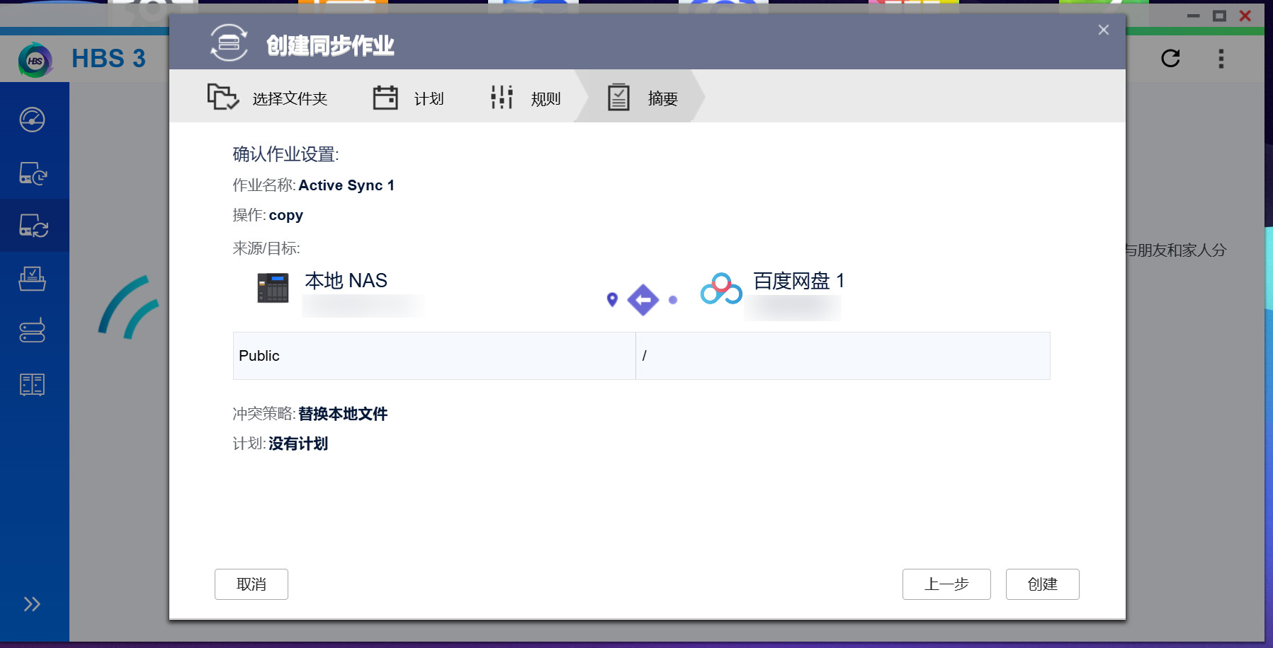 随后再选择同步选项,选择活动同步,就能实现百度网盘同步到NAS了,使用时也不用担心下载的问题,挂机慢慢下,资料文件总会被全部下载到本地。