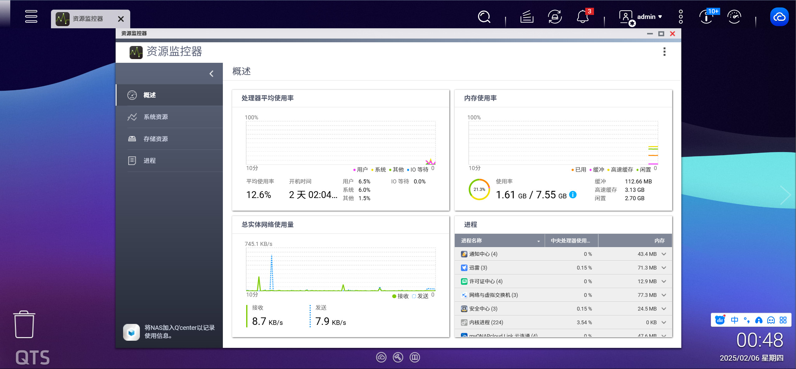 经过这段时间的使用,最直观的感受是用起来和Windows没啥两样。最新的威联通QTS5.2系统界面特别眼熟,菜单分类和图标排布都像电脑桌面一样直观。即使是普通用户插上硬盘也能直接开整,感觉连家里长辈都能对着界面秒懂怎么找文件,完全不用看说明书。